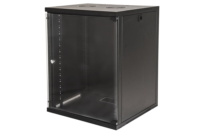 ARMADI A PARETE 19" PER RETIQuesti armadi rack 19" per installazione a muro sono ideali per tutte le correnti applicazioni network IT o per telecomunicazioni, e per rete. - Gli armadi vengono spediti già montati.- Fianchi laterali apribili- Porta frontale in vetro temprato, chiusura a chiave. La porta si può aprire di 180°, e si può installare in modo da essere aperta da entrambi i lati.- 4 montanti laterali verticali da 19" regolabili in profondità.- Capacità di carico 50 Kg.- Feritoie per ingresso cavi dall'alto o dal basso.- 27 viti per il montaggio dei dispositivi interni incluse.- Inclusi tasselli per il montaggio a muro.- Fori sul tetto per ventilazione passiva o installazione kit di ventole.Testato in conformità con gli standard EN55022:2010 EN55024:2010 EN61000-3-2:2014 EN61000-3-3:2013.